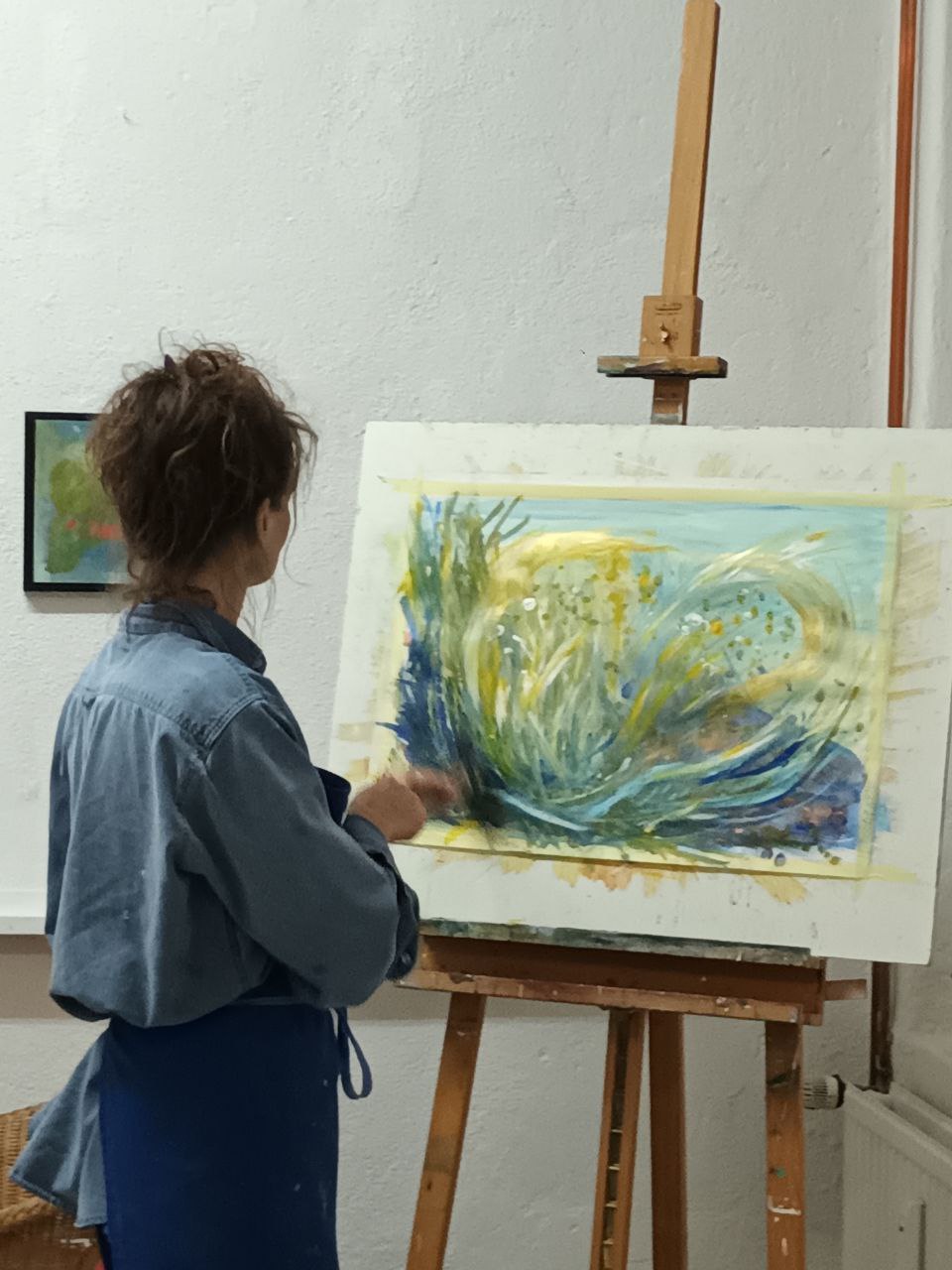 Dadurch öffnet sich ein Zugang zu einem sinnlich-ästhetischen Raum, der im Alltagsbewusstsein weniger leicht erreichbar ist. Der inneren Neugier folgend tauchen unbewusste Inhalte auf und werden durch das Eintauchen in den Tanz und auf dem Bild zum eigenen TanzKunstwerk.